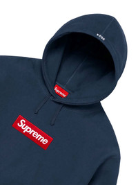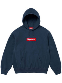 box logo hoodie Highlights - Navy blue - Drawstring hood - Front pouch pocket - When buying this unisex item, keep in mind that it is graded in standard men's sizing. Imported Composition Cotton 100%