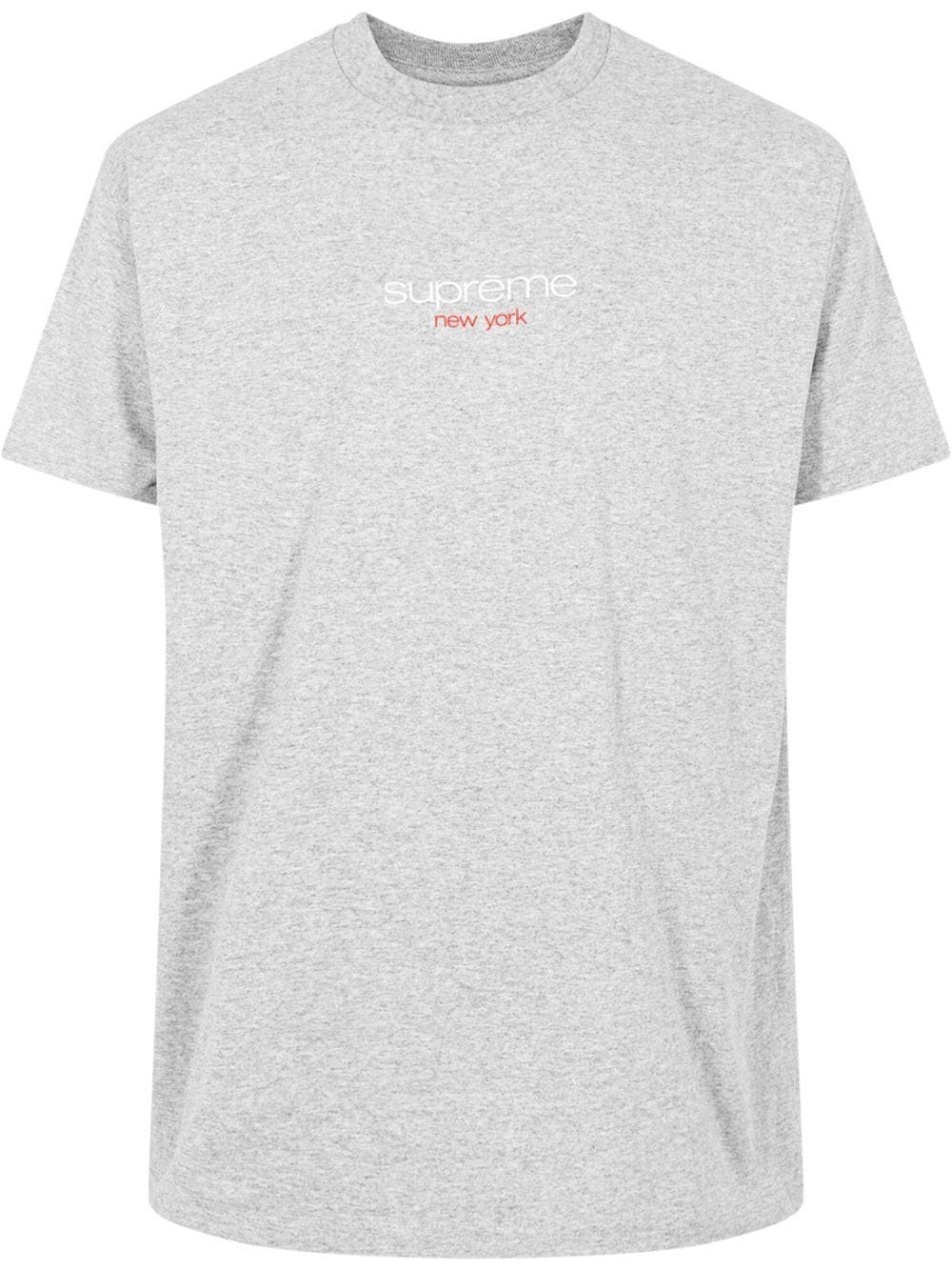 Classic Logo crew neck T-shirt An SS22 iteration of Supreme's original 1998 Classic-logo T-shirt, this piece pairs a relaxed crew-neck silhouette with subtle graphics to the front inspired by clothing brand Courreges. Made in United States Composition Cotton 100%