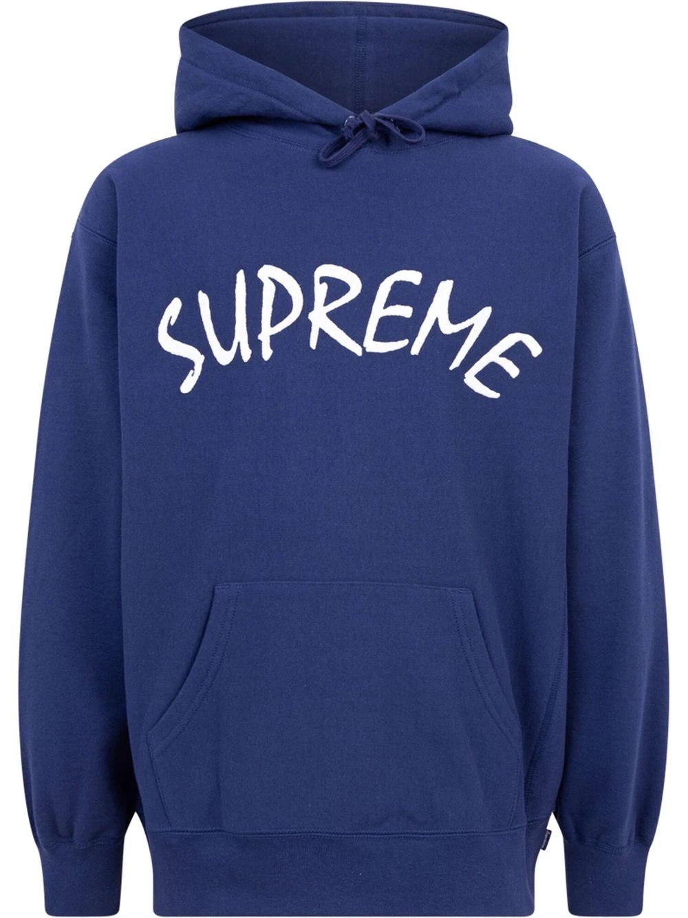 FTP Arc Logo hoodie Supreme's logos are known almost everywhere, and in recent years, they became instrumental to their growth. The FTP Arc Logo, presented in this blue hoodie, has been used by the brand several times in the past and it derives its design from a west-coast hip-hop hit: NWA’s Straight Outta Compton. Made in United States Composition Cotton 100%