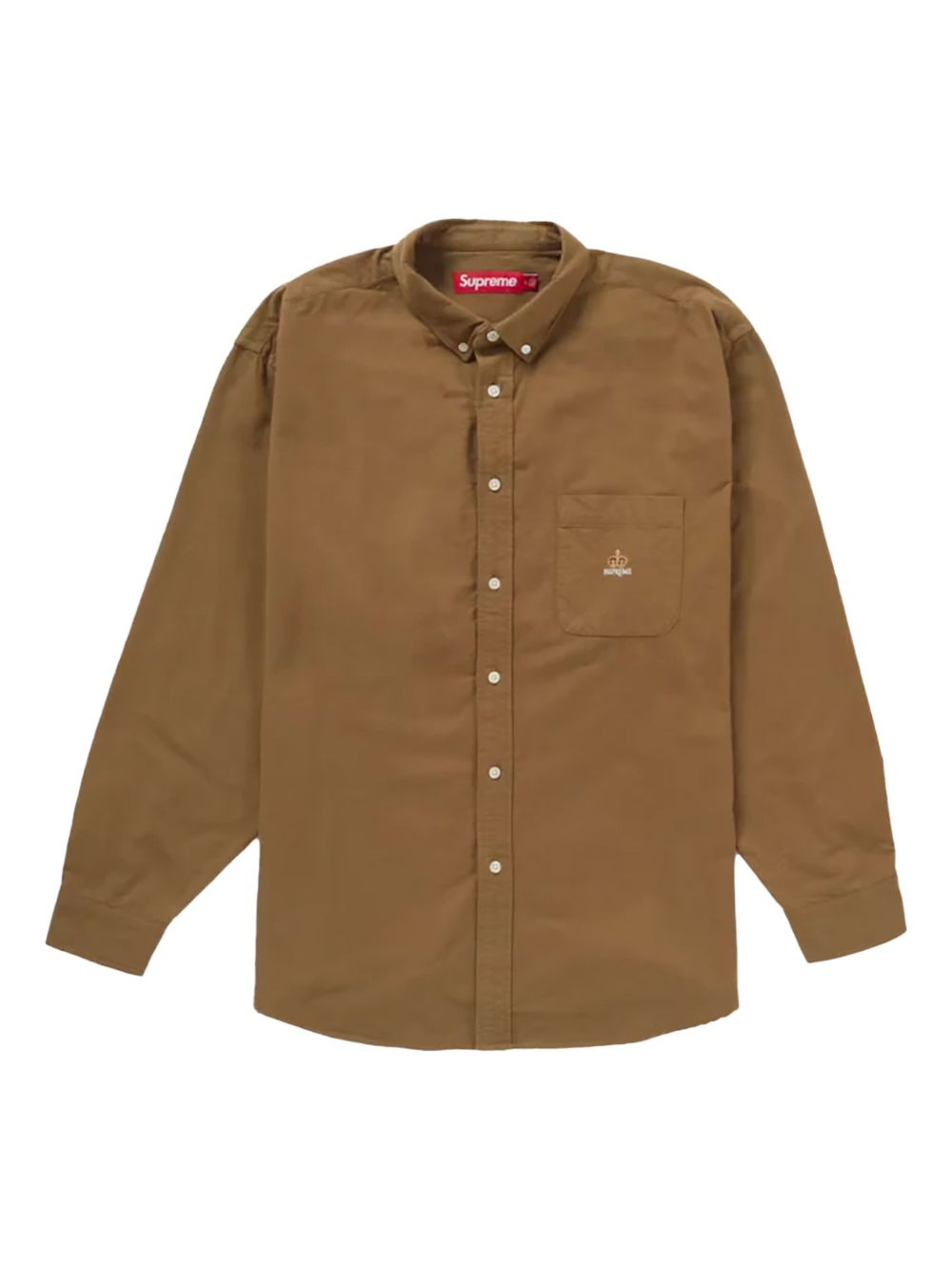 logo-embroidered flannel shirt Highlights - Light brown - Front button fastening - Long sleeves - Chest patch pocket - Embroidered logo Imported Composition Flannel 100%, Fabric 100% Washing instructions Read Manufacturer Guidelines