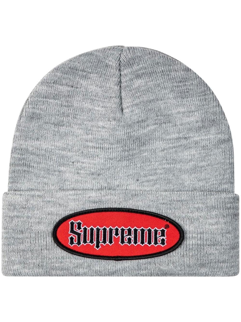 oval logo patch beanie Supreme's oval-patch beanie keeps coming back season after season, in distinct colours. This time, the accessory arrives in a grey hue and is completed with a turn-up hem. Imported Composition Outer: Acrylic 100%