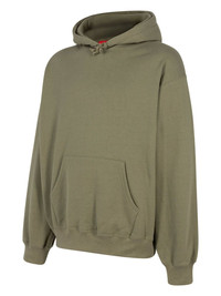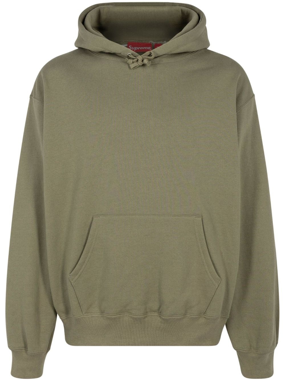 satin applique "FW23 - Light Olive" hoodie Cut from cotton to a relaxed drop shoulder silhouette, this Supreme hoodie is appliqued with satin logo lettering on the back. Highlights - Olive green/white - Cotton - Satin appliqu� - Logo lettering - Drawstring hood - Drop shoulder - Long sleeves - Front pouch pocket - When buying this unisex item, keep in mind that it is graded in standard men's sizing Imported Composition Polyester 100%, Cotton 100%