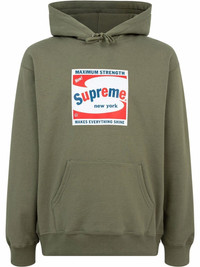 Shine graphic-print hoodie Showcasing Supreme's signature use of bold branding, this hoodie boasts a bold logo print to the front. In colourful tones, this detail contrasts against the olive-green colourway for an eye-catching look. Made in United States Composition Cotton 100%