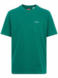 pocket-detail T-shirt Supreme's logo features as a small detail at the front of this T-shirt from the brand's SS22 collection. Elsewhere, the design is kept simple with a classic shape and cotton construction. Made in United States Composition Cotton 100%