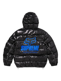 x Fox Racing® logo-patch jacket Highlights - Black - Padded design - Classic hood - Zip fastening - Front zip pockets - Long sleeves Imported Composition Lining: Down 100%, Nylon 100% Outer: Polyester 100% Washing instructions Read Manufacturer Guidelines