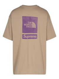 x The North Face "Khaki" T-shirt Supreme reunites with The North Face for another collaborative edit. Centred around versatile clothing, the line includes this classic crew neck, elevated with both brands' logos on the back in a contrasting purple hue. Highlights - Light brown - Cotton - Logo print to the rear - Crew neck - Drop shoulder - Short sleeves - Straight hem - When buying this unisex item, keep in mind that it is graded in standard men's sizing. Imported Composition Cotton 100%