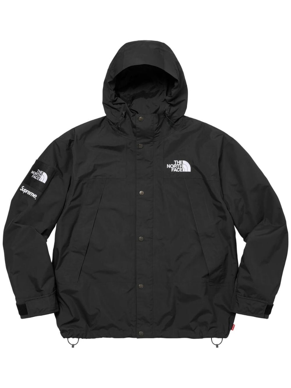 x The North Face mountain jacket Highlights - Black/white - Waterproof - Front press-stud and zip fastening - Slouchy drawstring hood - Long sleeves - Logo patch at the sleeve - Touch-strap cuffs - Embroidered logo at the chest - Two side zip-fastening pockets - Embroidered logo to the rear - Graphic print to the rear - Skull print to the rear - Fleece lining - Drawstring hem Imported Composition Fabric 100%