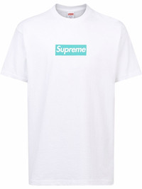 x Tiffany & Co. box logo T-shirt The Supreme x Tiffany & Co. box logo T-shirt in white was released as a part of the two brands' first-ever collaboration. This piece is crafted from cotton and features a Supreme box logo on the chest and Tiffany's logo at the rear. Made in United States Composition Cotton 100%