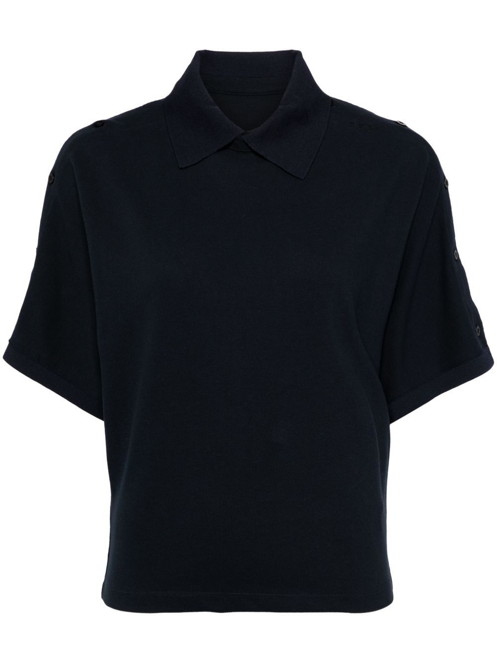asymmetric cotton polo shirt Highlights - Navy blue - Cotton - Pique weave - Asymmetric design - Deconstructed design - Polo collar - Side button fastening - Short sleeves - Straight hem Imported Composition Cotton 100% Washing instructions Dry Clean Only
