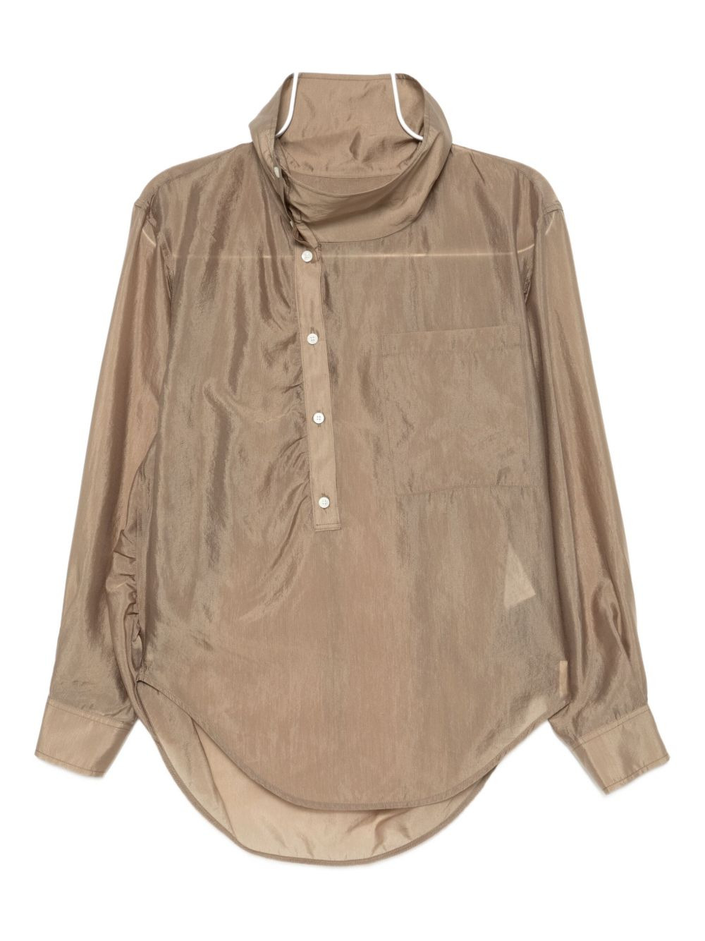 asymmmetric collar shirt Highlights - Light brown - Button fastening - Buttoned cuffs - Front patch pocket - Curved hem Imported Composition Rayon 83%, Polyester 17% Washing instructions Dry Clean Only