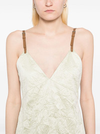 crinkled dress Highlights - Pastel green - Concealed rear zip fastening - V-neck - Adjustable shoulder straps - Rear slit Imported Composition Polyester 100% SIZE & FIT Model measurements Height 5 ft 9 in(1.76 m) Bust/Chest 31.1 in(79 cm) Hips 35.03 in(89 cm) Waist 24.4 in(62 cm) FittingInformation Designed for a slim fit that sits just away from the body offering a close yet comfortable fit The adjustable shoulder straps allow for a preferred fit when worn Made from a midweight non-stretch fabric