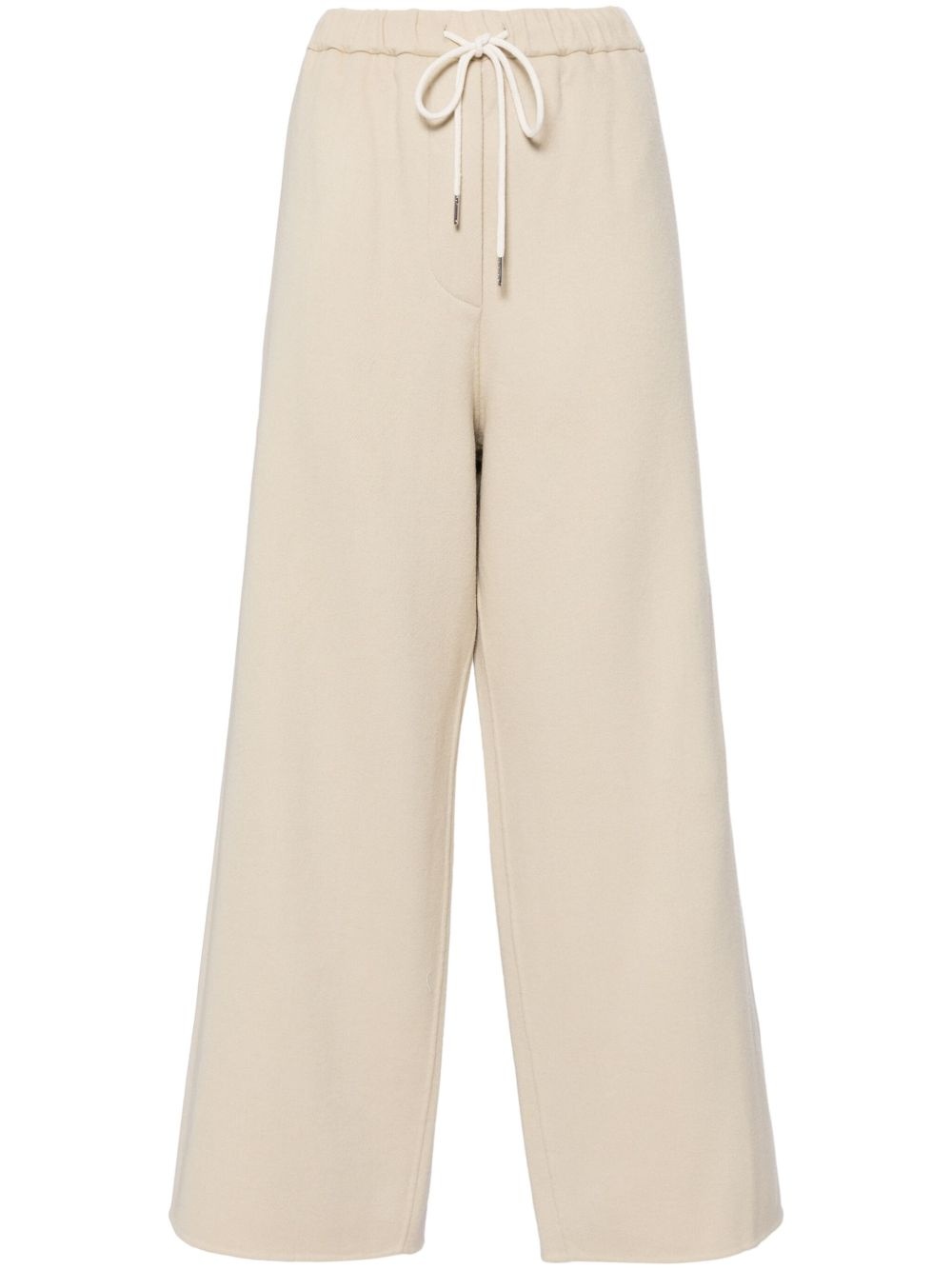 double faced string wide pants Highlights - Light beige - Wool blend - Elasticated drawstring waistband - Two side slash pockets - Rear patch pocket - Straight hem Imported Composition Wool 98%, Polyurethane 2% SIZE & FIT Model measurements Height 5 ft 10 in(1.77 m) Bust/Chest 31.49 in(80 cm) Hips 35.43 in(90 cm) Waist 25.19 in(64 cm) FittingInformation Designed for a straight-leg fit, these trousers allow for a close fit at the waist and an unrestricted, comfortable fit over the leg The elasticated waist allows for a comfortable fit Made from a midweight non-stretch fabric Washing instructions Dry Clean Only