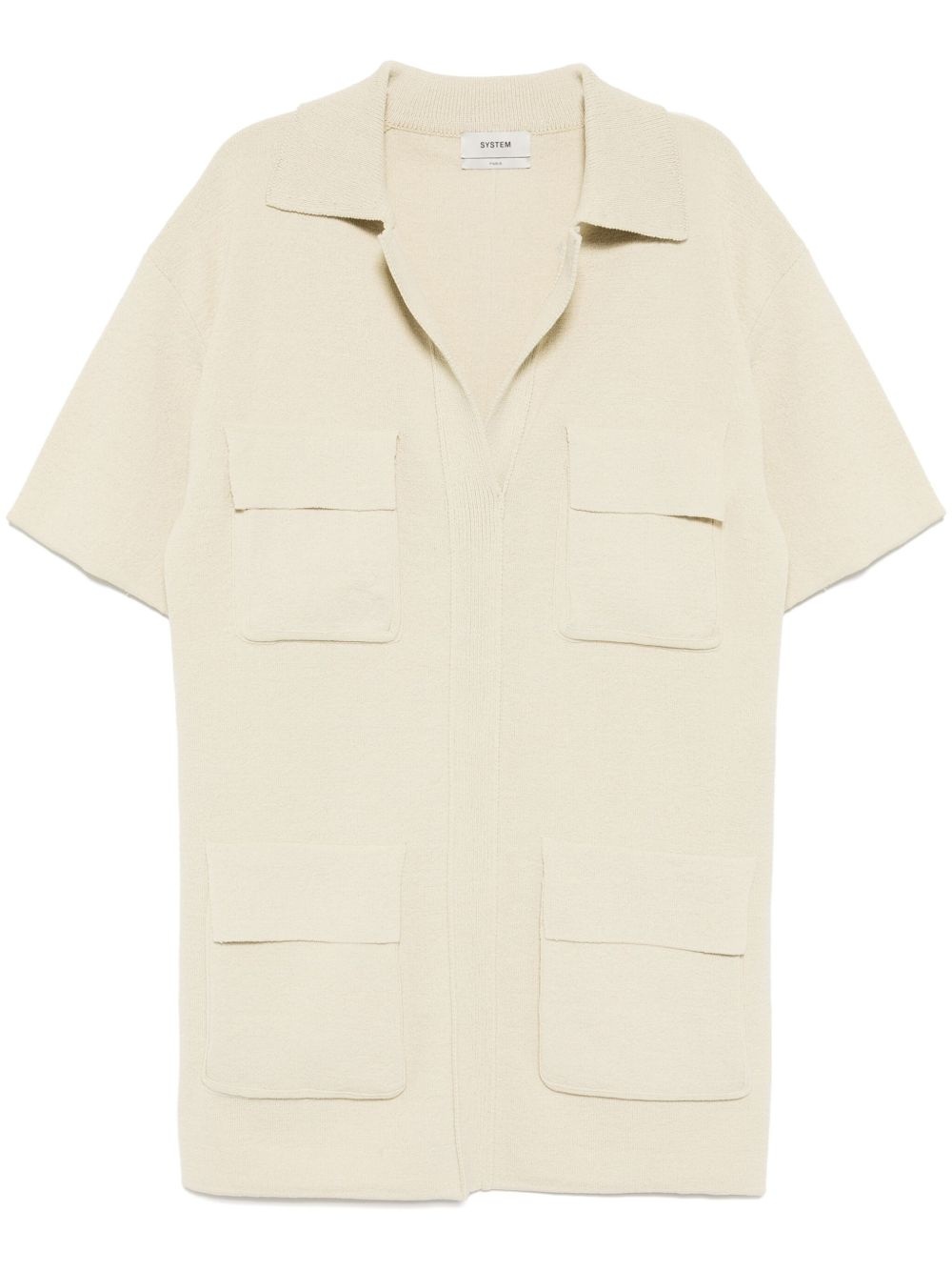 patched pocket knitted shirt Highlights - Sand beige - Four front flap pockets - Short sleeves - Stretch-jersey Imported Composition Cotton 84%, Polyester 16%