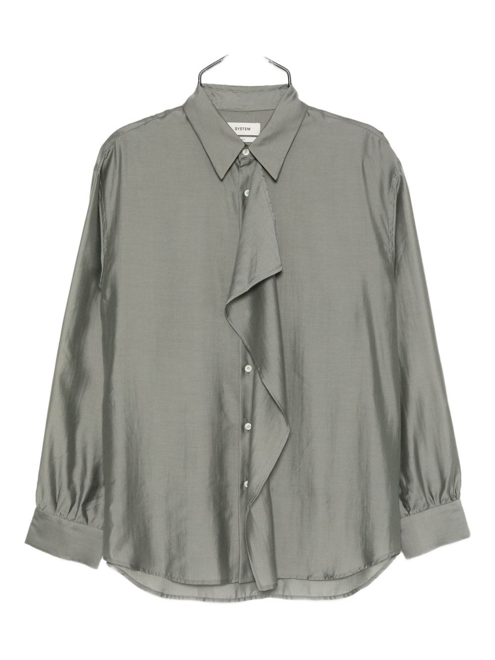 Scarf shirt Highlights - Stone grey - Front button fastening - Buttoned-cuff sleeves Imported Composition Rayon 87%, Polyester 13% SIZE & FIT Model measurements Height 6 ft 3 in(1.9 m) Bust/Chest 19.29 in(49 cm) Hips 38.58 in(98 cm) Waist 32.28 in(82 cm) FittingInformation Designed to be unstructured, offering a loose fit throughout Made from a lightweight non-stretch fabric Washing instructions Dry Clean Only
