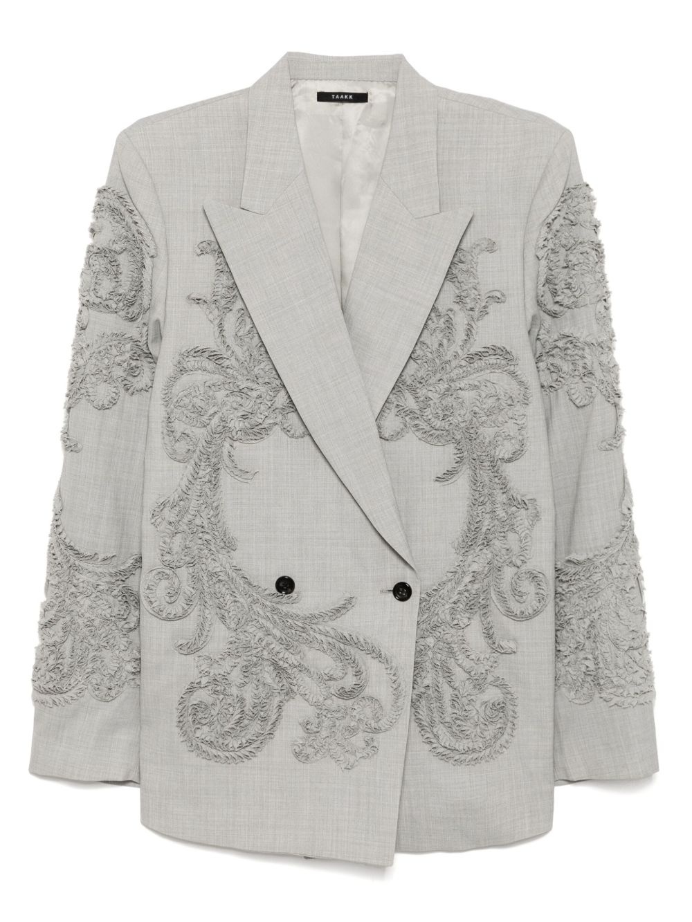 double-breasted blazer Highlights - Cool grey - Double-breasted button fastening - Two side inset pockets - 3d detailing Imported Composition Lining: Cupro 100% Outer: Polyester 70%, Wool 30% Washing instructions Dry Clean Only