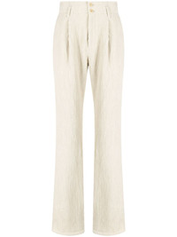 textured straight-leg trousers Highlights - Light beige - Cotton blend - Textured finish - Pleat detailing - Belt loops - Slip pockets to the sides - Two rear welt pockets - Front button and zip fastening Imported Composition Cotton 84%, Cupro 16% SIZE & FIT Model measurements Height 6 ft 2 in(1.87 m) Bust/Chest 34.25 in(87 cm) Hips 36.22 in(92 cm) Waist 29.52 in(75 cm) FittingInformation Designed with a flared hem, offering a slim fit over the leg, widening towards the hem Made from a midweight non-stretch fabric This piece fits true to size – take your usual size Washing instructions Hand Wash