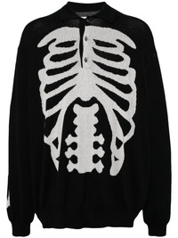 skeleton-print sweater Highlights - Black - Cotton - Polo collar - Skeleton print - Intarsia knit - Front button placket - Long sleeves - Ribbed cuffs and hem Imported Composition Cotton 100%