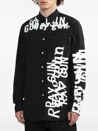 graphic letter-print two-tone shirt Highlights - Black/white - Cotton-silk blend - Two-tone design - Letter print - Metal eyelet detailing - Pointed flat collar - Front button fastening - Long sleeves - Buttoned cuffs - Curved hem Imported Composition Cotton 80%, Silk 20% SIZE & FIT Measurement CHEST 45.98 in(116.8 cm) SLEEVE LENGTH 27.99 in(71.1 cm) LENGTH 32 in(81.3 cm) WAIST 45.98 in(116.8 cm) Shoulder Width 17.99 in(45.7 cm)