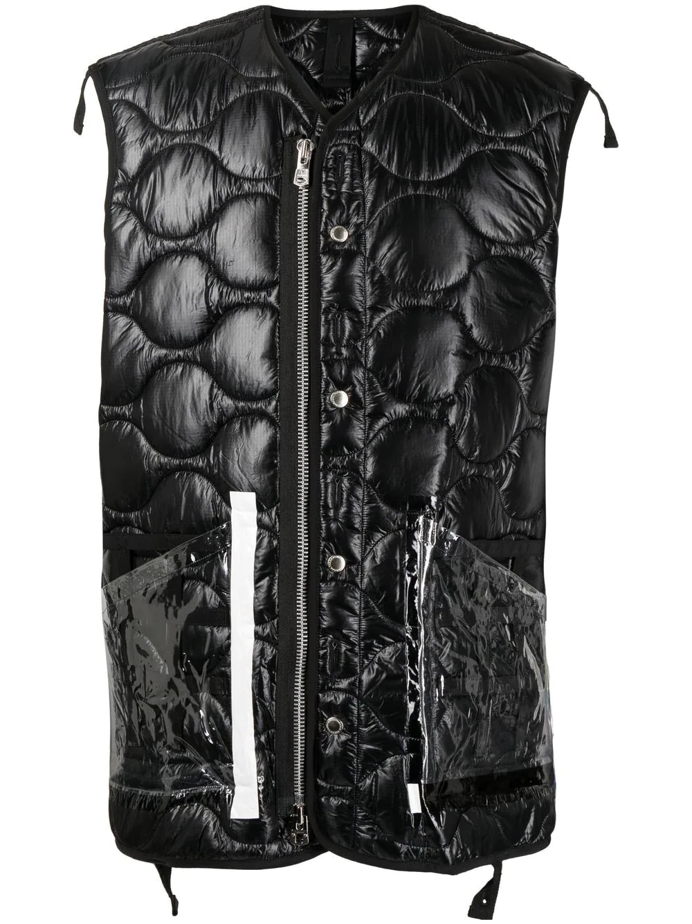 quilted transparent pocket gilet black quilted finish transparent pockets front button and zip fastening V-neck sleeveless Imported Composition Nylon 100% SIZE & FIT Model measurements Height 6 ft 2 in(1.87 m) Bust/Chest 34.25 in(87 cm) Hips 36.22 in(92 cm) Waist 29.52 in(75 cm) Measurement CHEST 47.99 in(121.9 cm) Shoulder Width 16.49 in(41.9 cm) WAIST 47.99 in(121.9 cm) FittingInformation This piece fits true to size. We recommend you get your regular size Cut for a slim fit Made with a mid-weight non-stretch fabric