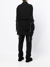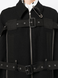 safety-pin detail jacket black wool decorative buckle detailing safety pin detail zip details classic collar front zip fastening long sleeves Imported Composition Wool 100% SIZE & FIT Model measurements Height 6 ft 0 in(1.84 m) Bust/Chest 35.43 in(90 cm) Hips 35.82 in(91 cm) Waist 28.74 in(73 cm) FittingInformation This is a one size item Cut for an oversized fit Made with a heavyweight non-stretch fabric Washing instructions Dry Clean Only
