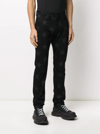 star printed cotton trousers Star printed cotton trousers from Takahiromiyashita The Soloist featuring a button fastening, belt loops, side pockets, a straight leg, rear pockets and a star print. Imported Composition Cotton 100% SIZE & FIT Model measurements Height 6 ft 2 in(1.87 m) Bust/Chest 38.18 in(97 cm) Hips 36.61 in(93 cm) Waist 29.13 in(74 cm) FittingInformation This piece fits true to size. We recommend you get your regular size Cut for a slim fit Made with a mid-weight non-stretch fabric Washing instructions Machine Wash