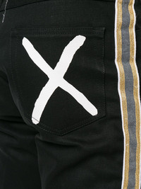 straight leg jeans Black cotton straight leg jeans from Takahiromiyashita The Soloist featuring a front button fastening, belt loops, a five pocket design, a stripe detail to the side, X painted details to the back pockets and a regular length. Imported Composition Cotton 100% SIZE & FIT Model measurements Height 6 ft 2 in(1.87 m) Bust/Chest 35.43 in(90 cm) Hips 35.43 in(90 cm) Waist 29.13 in(74 cm) Washing instructions Dry Clean Only