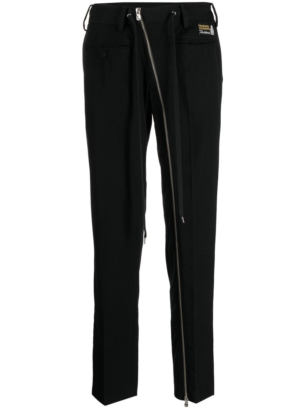 zip-detail tailored trousers black cotton blend zip detail belt loops drawstring fastening waist two front jetted pockets tailored cut slim cut Imported Composition Cotton 80%, Polyester 20% Washing instructions Dry Clean Only