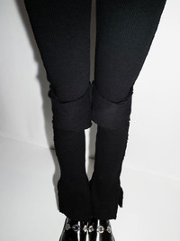 Warm Up knitted flared trousers Warm Up knitted flared trousers from Talia Byre featuring black, cotton blend, knitted construction, high waist, flared design, side slits and raw-cut edge. Made in Italy Composition Cotton 98%, Elastane 2% SIZE & FIT Model measurements Height 5 ft 10 in(1.78 m) Bust/Chest 30.7 in(78 cm) Hips 33.85 in(86 cm) Waist 22.44 in(57 cm) FittingInformation This piece fits true to size. We recommend you get your regular size Cut for a slim fit Made with a mid-weight fabric