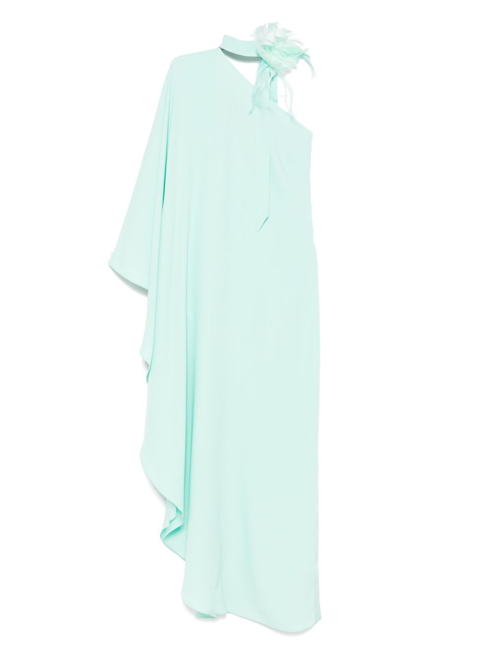 Bolkan maxi dress Highlights - Aqua green - One-shoulder - Side slit - Scarf detailing - Feather detailing Made in Italy Composition Ostrich Feather 100%, Acetate 78%, Viscose 22% SIZE & FIT Model measurements Height 5 ft 9 in(1.75 m) Bust/Chest 32.67 in(83 cm) Hips 36.22 in(92 cm) Waist 24.8 in(63 cm) FittingInformation Designed to be unstructured, offering a loose fit throughout Made from a midweight non-stretch fabric