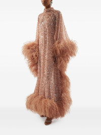 Casta Diva Sublime oversized feather-trimmed sequined tulle gown Blush
