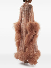 Casta Diva Sublime dress Highlights - Blush pink - Sequin embellishment - High neck - Feather trim - Wide sleeves - Floor-length Made in Italy Composition Lining: Acetate 74%, Viscose 22%, Elastane 4% Outer: Polyester 100% Ostrich Feather 100% Washing instructions Dry Clean Only