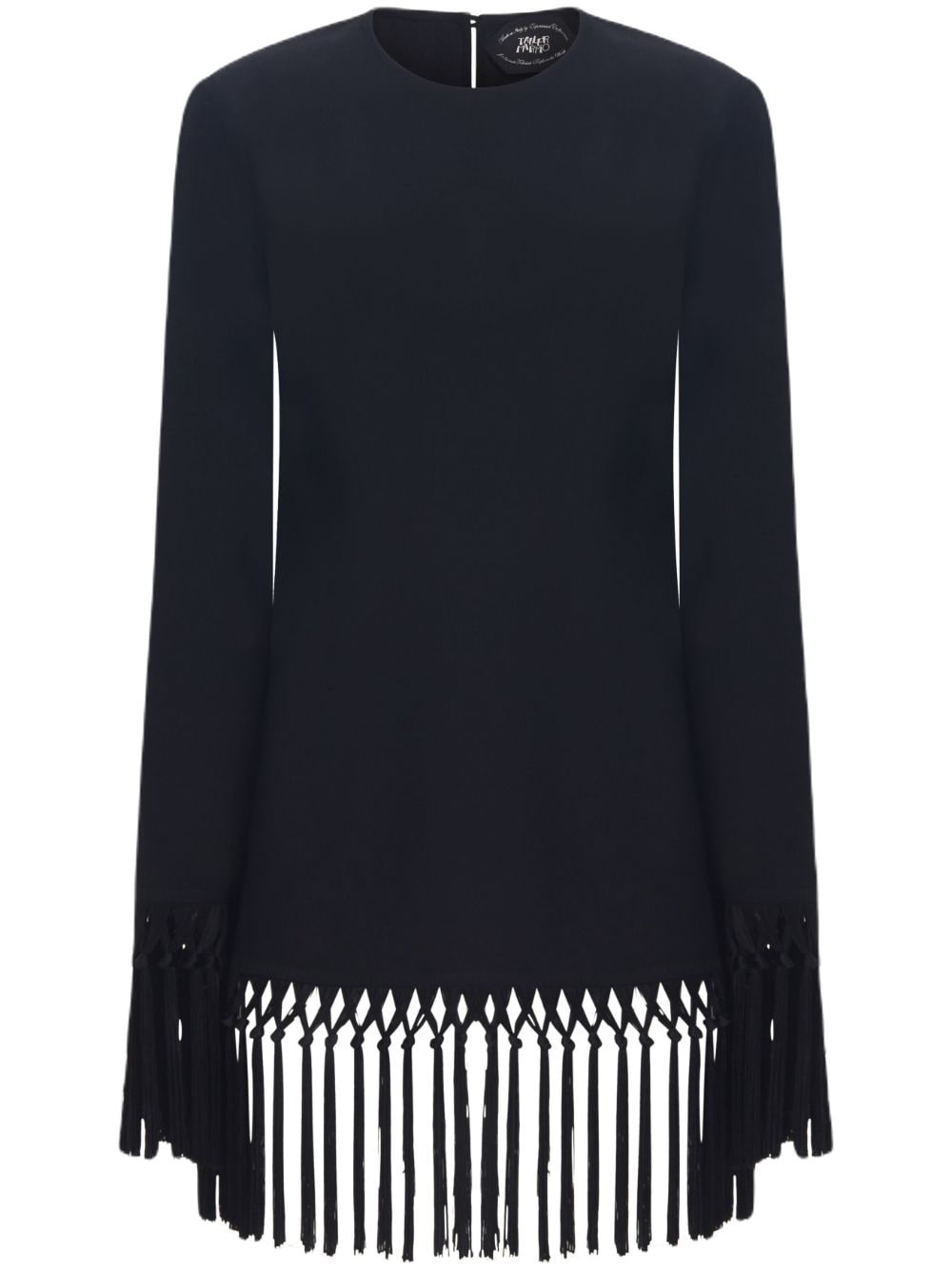Claudia mini dress Highlights - Black - Crepe cady - Round neck - Rear button fastening - Long sleeves - Tassel trim Made in Italy Composition Acetate 78%, FSC Viscose 22%