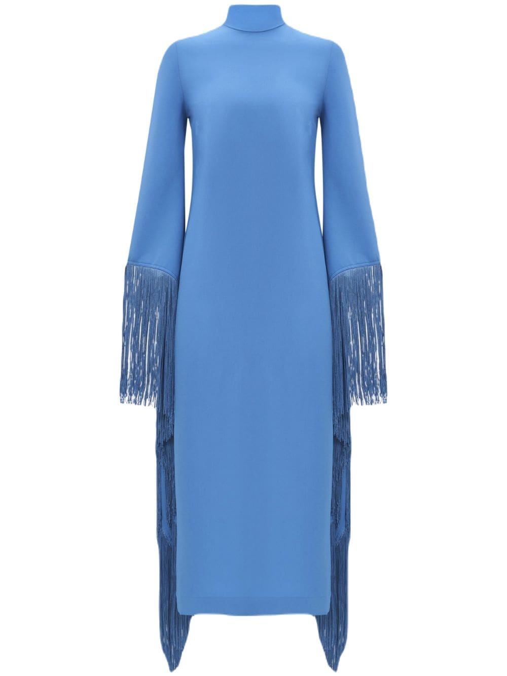 Del Mar midi dress Highlights - Ocean blue - Tassel trim - High neck - Concealed rear zip fastening - Mid-length - Straight hem Made in Italy Composition Acetate 78%, FSC Viscose 22%