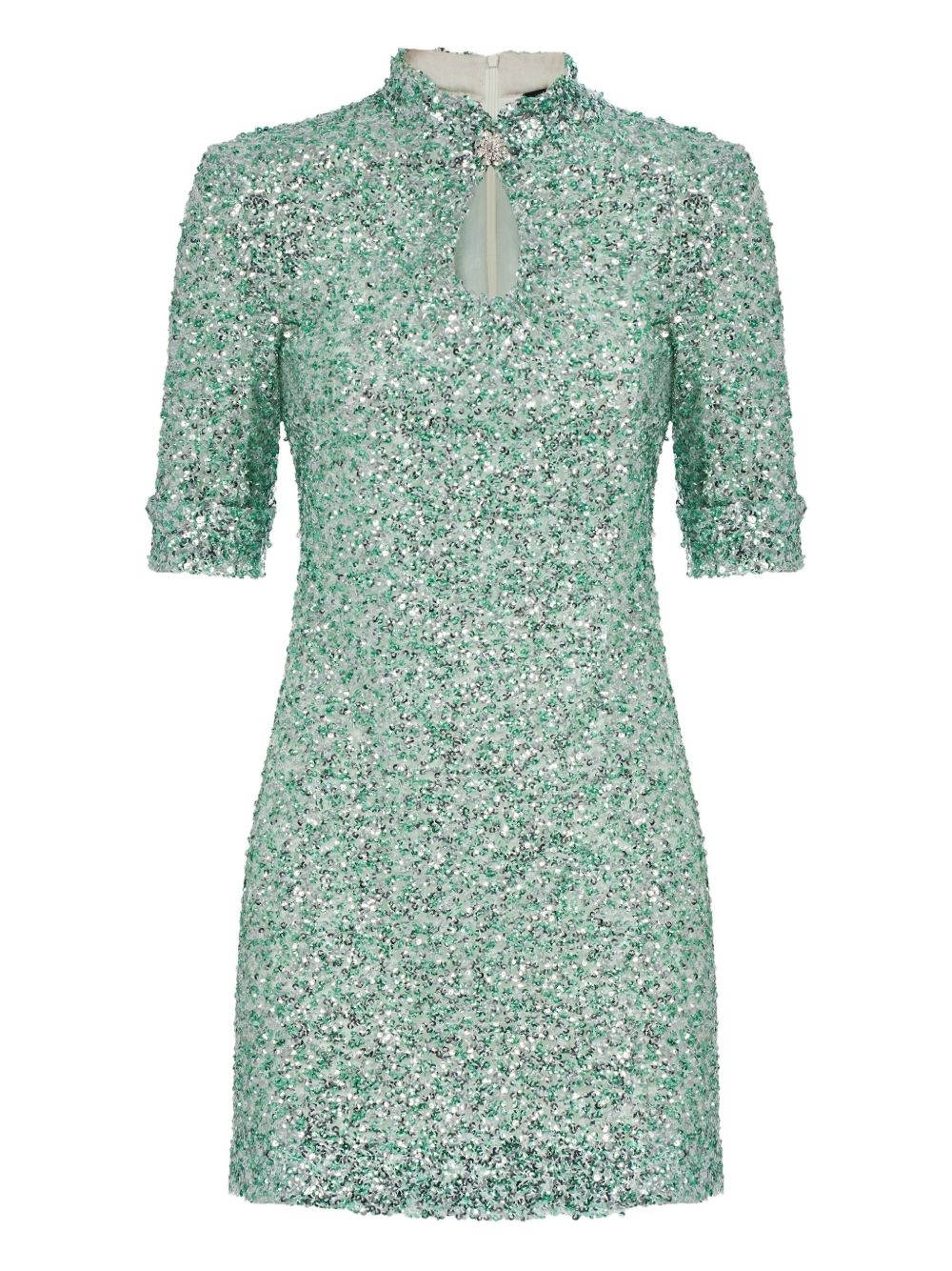 Delphi dress Highlights - Mint green - Sequin embellishment - Keyhole neckline - Short sleeves - High neck Made in Italy Composition Polyester 100% Washing instructions Dry Clean Only