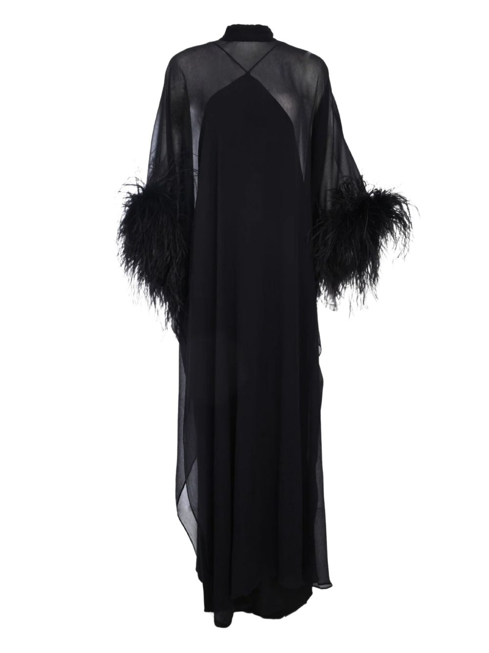 feather-trim kaftan Highlights - Black - Feather trim at cuffs - Sheer overlay - High neck - Keyhole detail at back - Tie fastening Made in Italy Composition Silk 100%