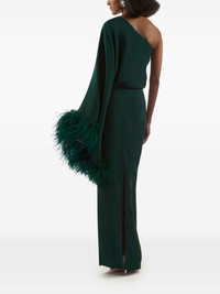 Feathered Eternity maxi dress Highlights - Green - Crepe texture - Concealed side zip fastening - Asymmetric neck - One-shoulder - Feather cuff - Single batwing sleeve - Cut-out detailing - Pleat detailing - Dart detailing - Rear slit - Unlined - Straight hem - Long length Made in Italy Composition Viscose 100%, Ostrich Feather 100% Washing instructions Dry Clean Only