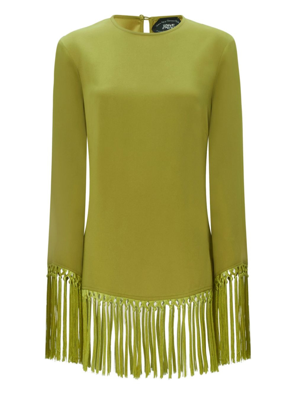 fringe-trimmed long-sleeve dress Highlights - Lime green - Long sleeves - Round neck - Fringe trim - Hem fringe - Acetate material Made in Italy Composition Acetate 78%, Viscose 22% Washing instructions Dry Clean Only