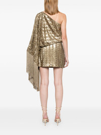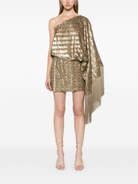 Eternity one-sleeve fringed sequined satin mini dress