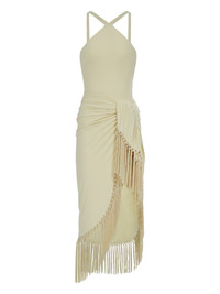 Hera Artisanal swimsuit and tasseled pareo set Cream