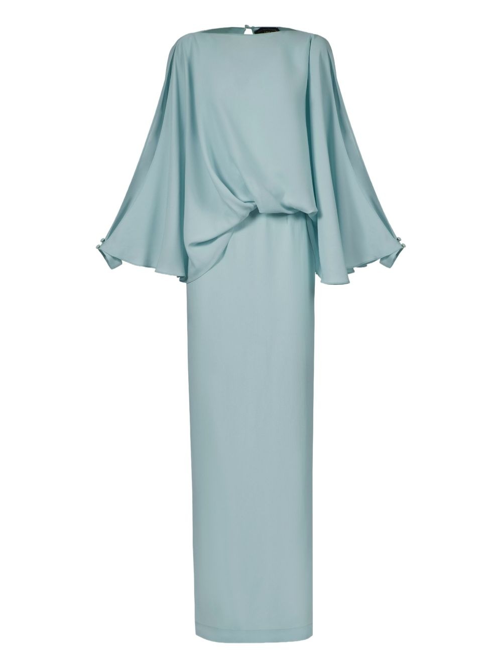 La Maddalena dress Highlights - Blue - Rear button fastening - Boat neck - Long slit sleeves - Rear slit Made in Italy Composition Acetate 78%, Viscose 22%
