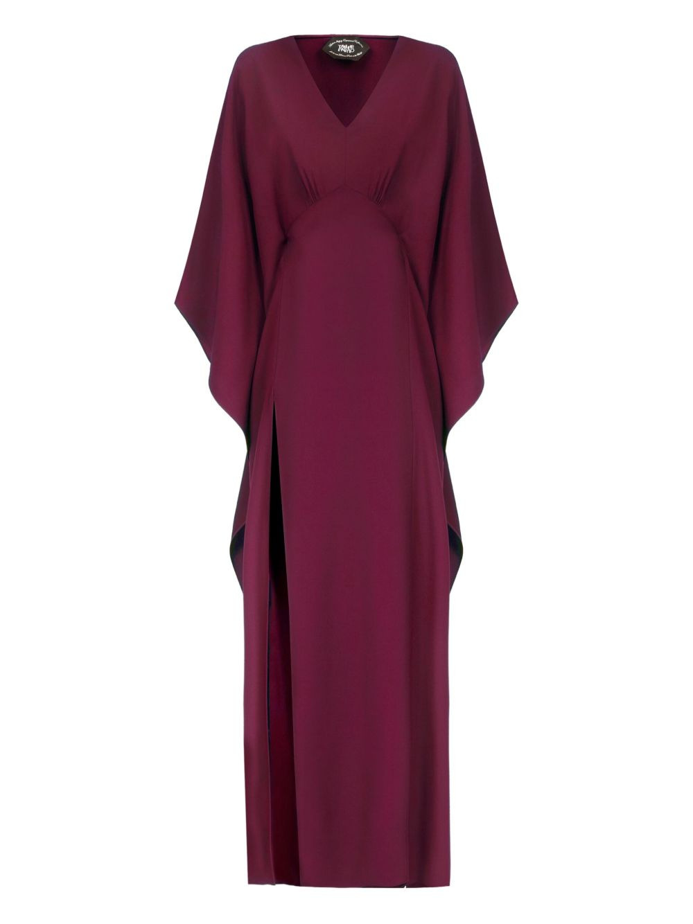 Obsession V-neck maxi dress Highlights - Plum - V-neck - Batwing sleeves - Side slit - Self-tie belt Made in Italy Composition Acetate 78%, Viscose 22% Washing instructions Read Manufacturer Guidelines