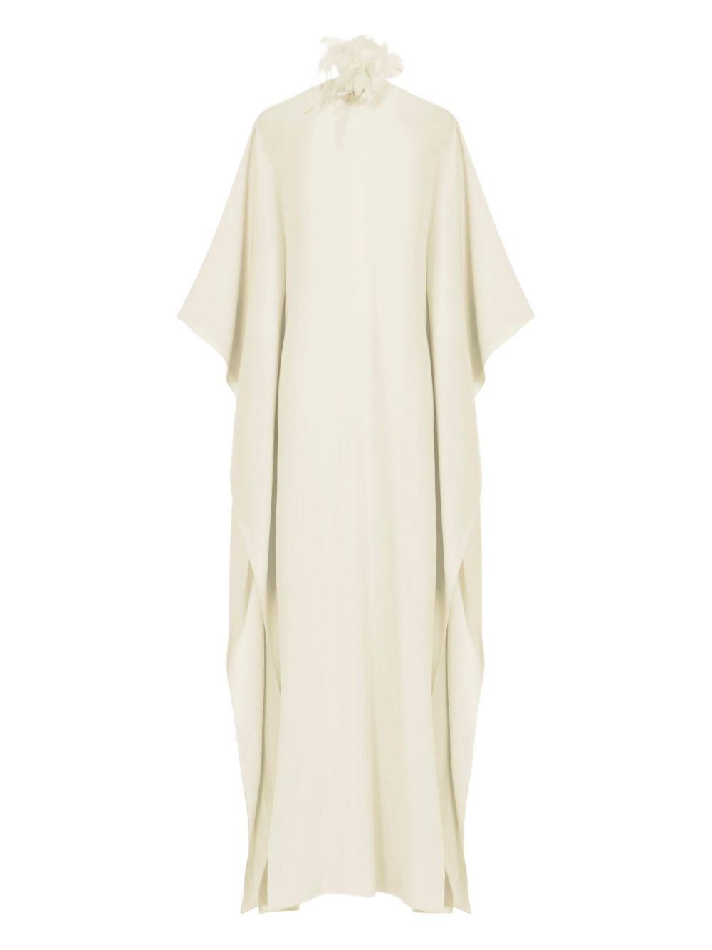 Sza Sza midi dress Highlights - Ecru - Crew neck - Batwing sleeves - Side slits - Feather detailing Made in Italy Composition Acetate 78%, Viscose 22% Washing instructions Read Manufacturer Guidelines