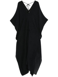 tassel-detail kaftan Highlights - Black - Rear tie fastening - V-neck - Half-length sleeves - V-back Made in Italy Composition Cotton 45%, Viscose 39%, Silk 16% SIZE & FIT Model measurements Height 5 ft 11 in(1.8 m) Bust/Chest 32.67 in(83 cm) Hips 36.22 in(92 cm) Waist 24.4 in(62 cm) Measurement LENGTH 64.96 in(165 cm) WAIST 70.86 in(180 cm) FittingInformation Designed to be unstructured, offering a loose fit throughout Made from a midweight non-stretch fabric This piece is only produced in one size; for help with this item's sizing, refer to our product measurements