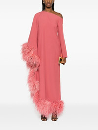 Ubud Extravaganza feather-trim maxi dress Highlights - Blush pink - Cady texture - Ostrich feather-trim detailing - Asymmetric neck - Long sleeves - Concealed side fastening - Asymmetric hem - Maxi - No lining Made in Italy Composition Ostrich Feather 100%, Acetate 78%, Viscose 22% SIZE & FIT Model measurements Height 5 ft 10 in(1.77 m) Bust/Chest 29.92 in(76 cm) Hips 34.25 in(87 cm) Waist 23.62 in(60 cm) Measurement CHEST 44.88 in(114 cm) LENGTH 55.11 in(140 cm) FittingInformation Designed for a relaxed fit, this piece allows for comfort and movement when worn Made from a midweight non-stretch fabric This piece fits true to size – take your usual size Washing instructions Dry Clean Only