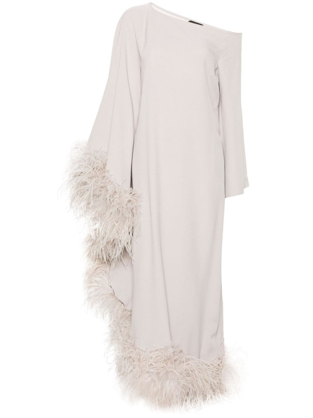 Ubud Extravaganza maxi dress Highlights - Beluga grey - Crepe texture - Ostrich feather - Asymmetric neck - Long sleeves - Feather-trim detailing - Asymmetric hem - Ankle-length - Concealed side zip fastening Made in Italy Composition Ostrich Feather 100%, Acetate 78%, Viscose 22% SIZE & FIT Model measurements Height 5 ft 11 in(1.8 m) Bust/Chest 33.07 in(84 cm) Hips 37.4 in(95 cm) Waist 25.19 in(64 cm) FittingInformation Designed for a relaxed fit, this piece allows for comfort and movement when worn Made from a midweight non-stretch fabric This piece fits true to size – take your usual size