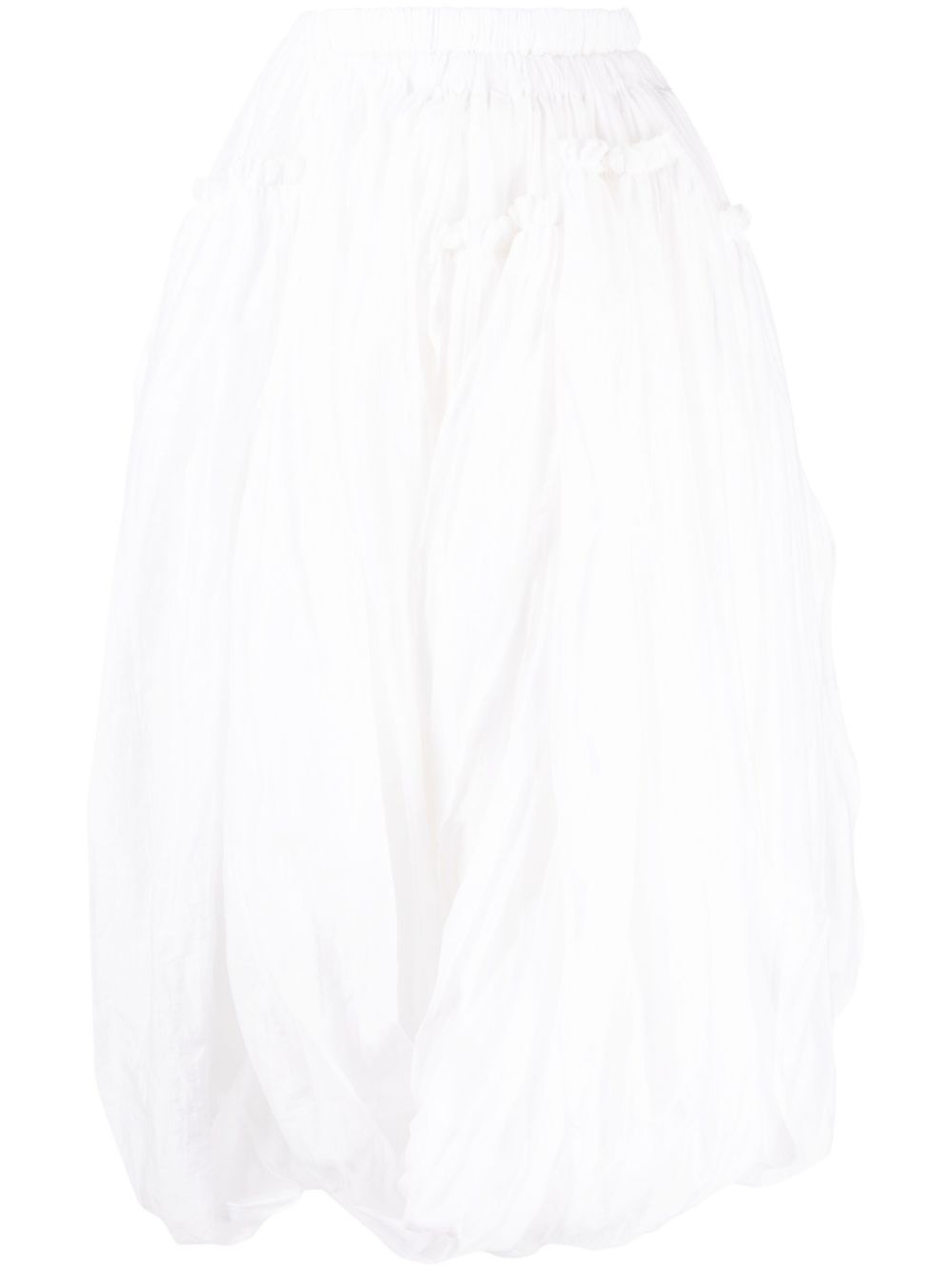 draped full midi skirt Highlights - White - Cotton - Full skirt - Draped design - Elasticated waistband - Ruffled trim - A-line - Below-knee length - Asymmetric hem Imported Composition Cotton 36%, Nylon 36%, Ramie 28% SIZE & FIT Model measurements Height 5 ft 9 in(1.76 m) Bust/Chest 31.1 in(79 cm) Hips 35.03 in(89 cm) Waist 24.4 in(62 cm) FittingInformation Designed with an asymmetric hem, this skirt is intended to be worn just below the waist The elasticated waist allows for a comfortable fit Made from a midweight non-stretch fabric This piece fits true to size – take your usual size
