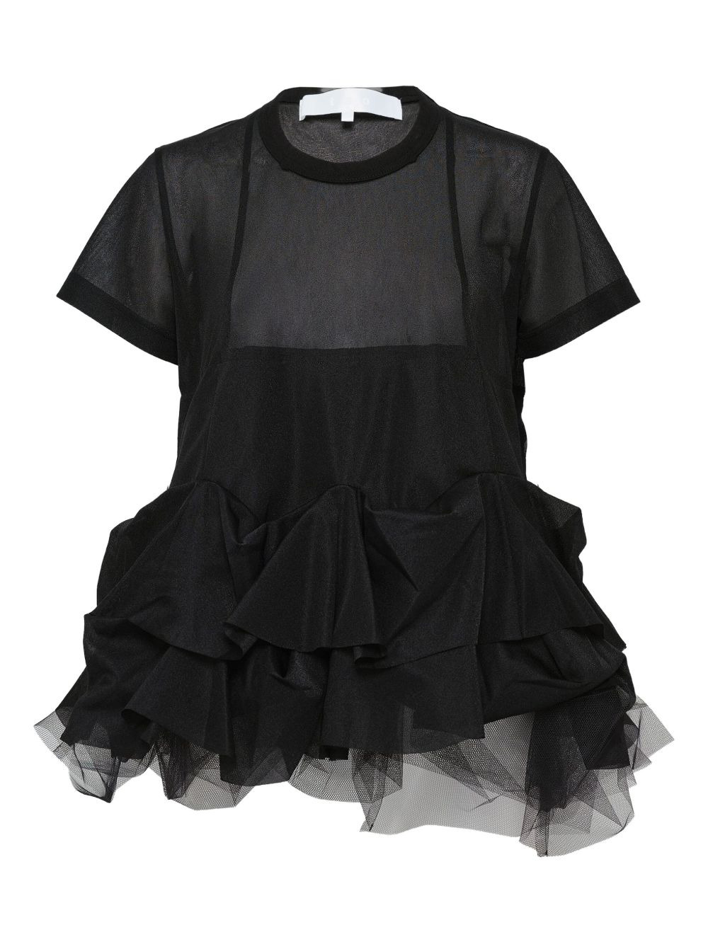 layered tulle T-shirt Highlights - Black - Short sleeves - Layered ruffles - Sheer panel - Tulle panelling - Round neck Imported Composition Polyester 100%, Nylon 100%, Cotton 100% Washing instructions Read Manufacturer Guidelines