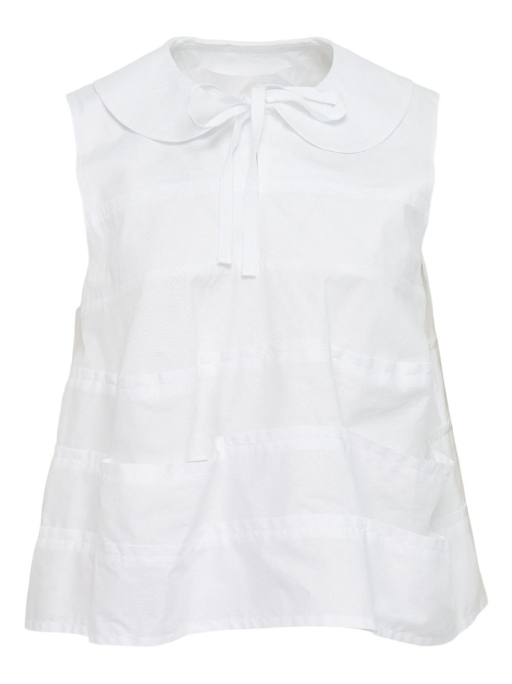 Peter Pan-collar layered blouse Highlights - White - Peter pan collar - Layered design - Sleeveless - Tie neck - Patch pockets Imported Composition Cotton 100% Washing instructions Read Manufacturer Guidelines