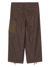 camouflage-print wide-leg trousers Highlights - Ochre brown - Cotton - Camouflage print - Mid-rise - Wide leg - Embroidered logo to the side - Front button and zip fastening - Belt loops - Slip pockets to the sides - Side patch pocket - Two rear welt pockets - Dart detailing - Drawstring hem Imported Composition Body: Polyamide 80%, Cotton 20% Polyester 60%, Polyamide 40% Lining: Cotton 100%