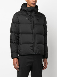 drawstring hood padded jacket black cotton/duck feather quilted padded design two side inset pockets front zip fastening drawstring hood long sleeves elasticated cuffs straight hem Imported Composition Lining: Cotton 100%, Polyamide 100%, Duck Feathers 100% Outer: Polyamide 100% SIZE & FIT Model measurements Height 6 ft 2 in(1.87 m) Bust/Chest 36.22 in(92 cm) Hips 37 in(94 cm) Waist 27.95 in(71 cm) FittingInformation This piece fits true to size. We recommend you get your regular size Cut for a loose fit Made with a mid-weight non-stretch fabric